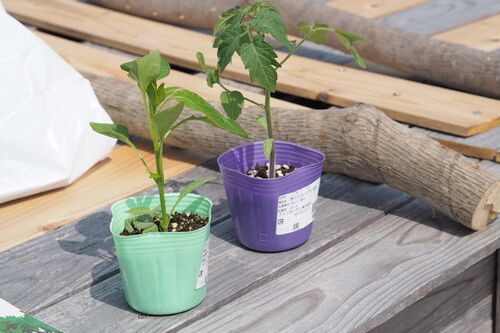 ミニトマトとピーマンの苗を買ってきました。 どっちがどっちでしょう? こっちがピーマン(京波、実生苗)で、 こちらがミニトマト(甘っこ、実生苗)。トマトは乾燥気味に育てると良いので高植えにしています。 あと、バジルと紫蘇の種。何週間か前にも紫…